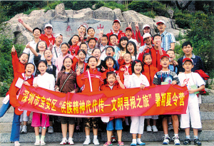 为纪念中国工农红军长征70周年,增强全区青少年爱国情感,引导青少年接触社会、了解社会,宝安区关工委、区文明办、区教育局、团区委等七个部门,联合组织了“重走长征路,点燃爱国情”和“发现深圳”两项活动。参加此次活动的全区青少年共222人,都是来自全区各中小学的“三好”学生、“优秀少先队员”、“优秀团员”、劳务工子女和贫困家庭的优秀学生代表。同学们通过在江西革命老区6天的“长征”,接受了一次生动的革命传统和爱国主义教育,实地体验到新中国的缔造者们为了祖国独立自主、繁荣富强所作出的艰苦努力和付出的巨大牺牲;通过与老区学生同吃、同住、同劳动,在社会课堂上深刻领悟了“以辛勤劳动为荣、以好逸恶劳为耻”、“以艰苦奋斗为荣、以骄奢淫逸为耻”、“喝水不忘掘井人”的道理。在活动中他们深刻感受到集体主义、团结互助的重要性,收获了“战斗友情”。通过“发现深圳”的系列活动,同学们更加了解了深圳、宝安的风俗民情,了解到深圳从小渔村到大特区的艰苦创业史,明白了学好科学文化知识的重要性,纷纷表示一定要更加勤奋学习,锻炼成才,报答长辈,服务社会。