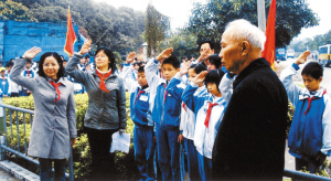 关工委老同志和孩子们一起缅怀先烈。