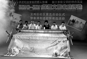 据介绍,由深圳市妇联和深圳报业集团主办的“2010-2011深圳文明家庭评选活动”社区竞选活动于5月13日正式启动,截至昨日,全市共举行了45场文明家庭评选社区PK赛。据悉,活动将以市民现场投票、网络投票和主办单位评审相结合的方式,最终评出一批“2010-2011深圳文明家庭”。