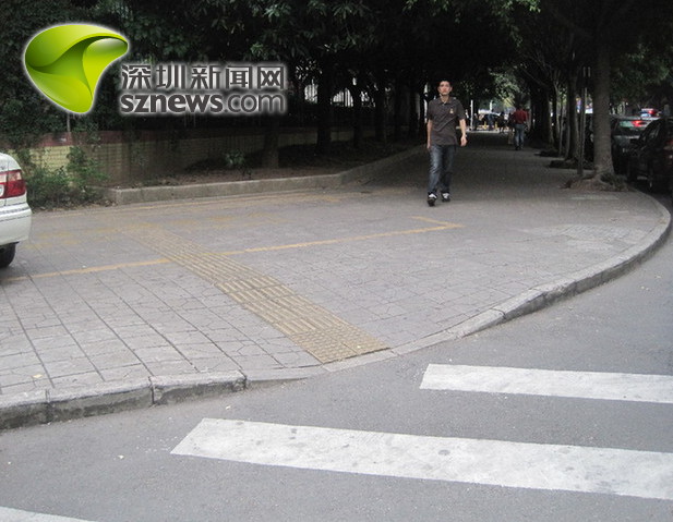 福田区商报路附近,通往斑马线的一段盲道。记者 王丹丹 摄?