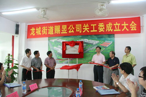 省关工委副主任刘林松(右三)等领导为赐昱公司关工委成立揭牌 |